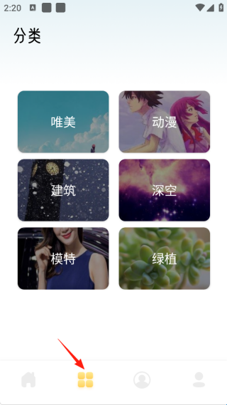 2、在底部“分类”栏目中,有着根据风格分类选择,超多高清壁纸免费挑选。