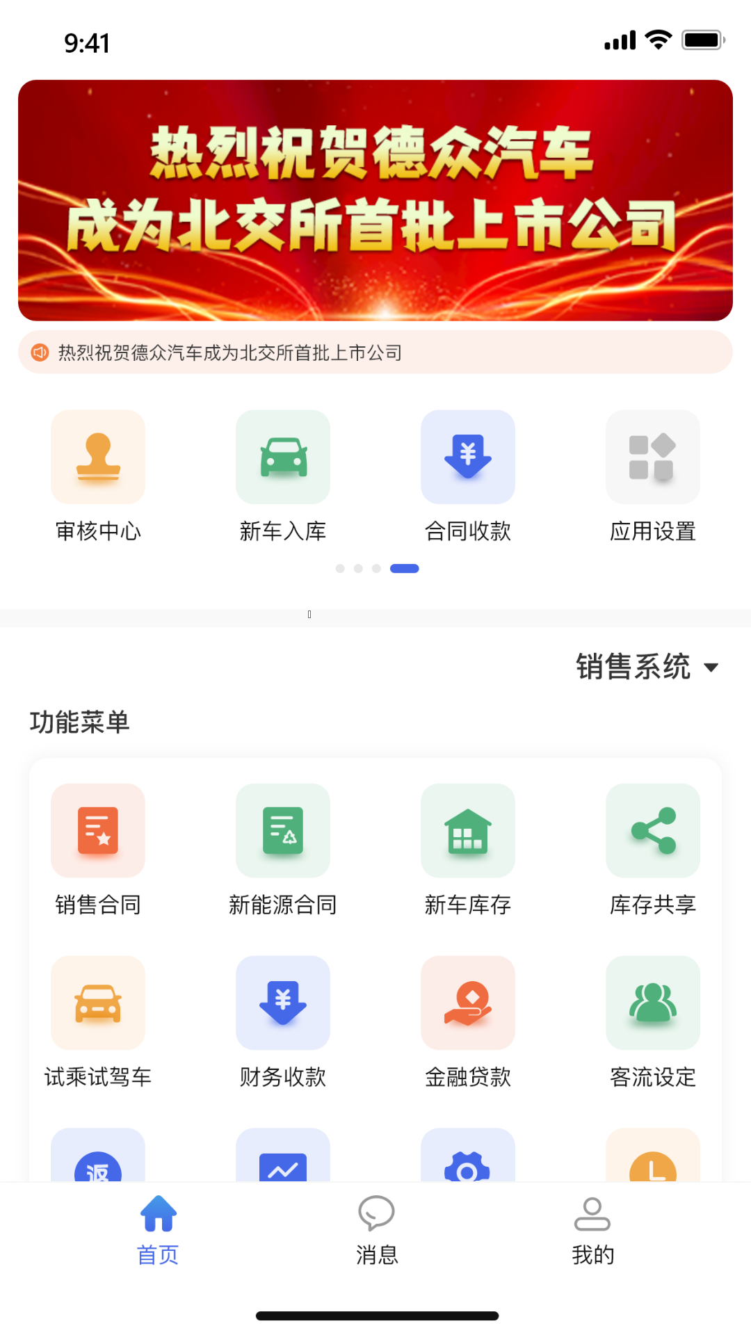 思车网软件是一款专注于车辆销售一站式服务平台,在这里多提供的服务内容板块是非常齐全的,提供销售合同、新车库存、试驾、审核中心等,可以很好的满足广大销售人员服务需求,以及最新车行资讯等都可以在这里获取到,感兴趣的用户朋友们快来下载吧!