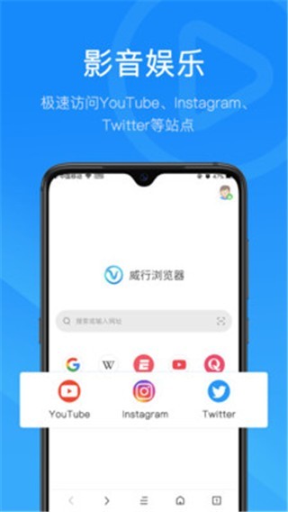 威行浏览器app是一个可以让用户轻松访问国外网站的浏览工具,您可以在app中轻松的连接Google、Facebook、YouTube等国外的网站,让用户可以轻松的浏览更多的网页内容;为用户提供了非常稳定的专线,拒绝任何掉线的情况,让用户可以非常轻松的进行网页浏览;平台还为你提供了许多国外网站的标签,这样用户就可以轻松的在线访问国外的购物平台、电影网站等等,然后您得到更好的上网体验;想要体验优质上网的用户,快来下载威行浏览器安卓版使用吧,以后访问国外的网站就会更快速了!