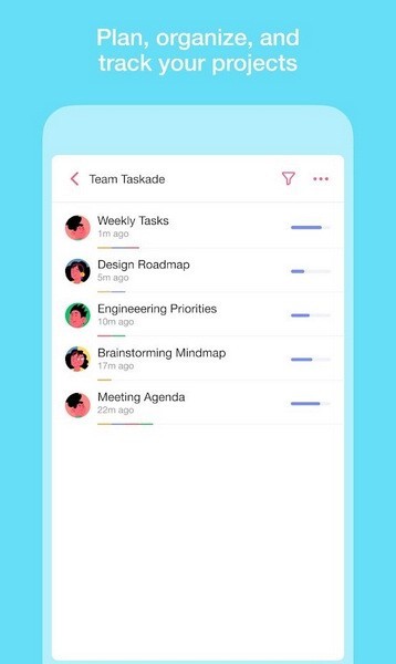 1、你知道一个人每天会在脑海里冒出七万个想法吗?用 Taskade把它们组织起来,列出任务清单、记录想法、共同协作,一起提高团队的工作效率。方式。无论你是用来关注日常的目标、管理项目或者活动策划,用 Taskade都非常地简单和有趣。