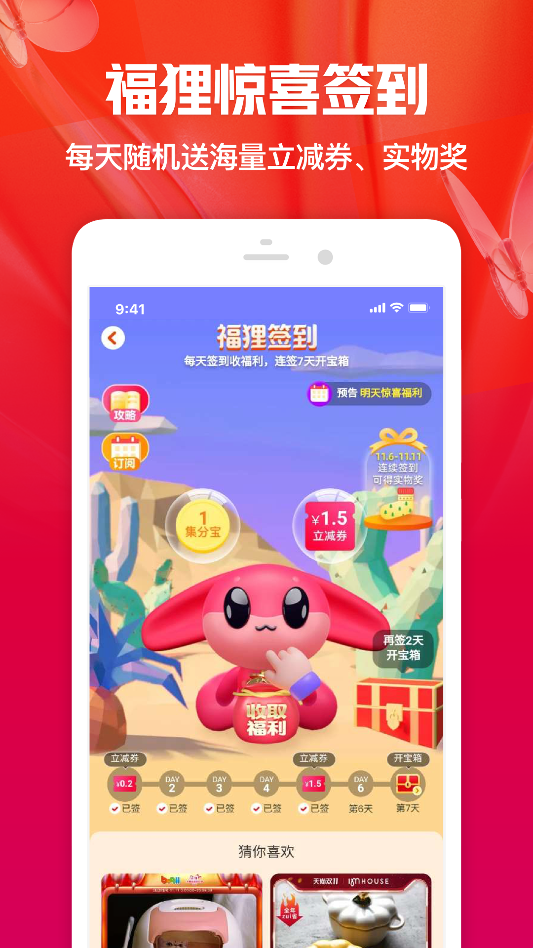 5.不止省钱还有福利,每天签到抽现金,做任务攒能量,可兑大额红包,购物直接抵扣。