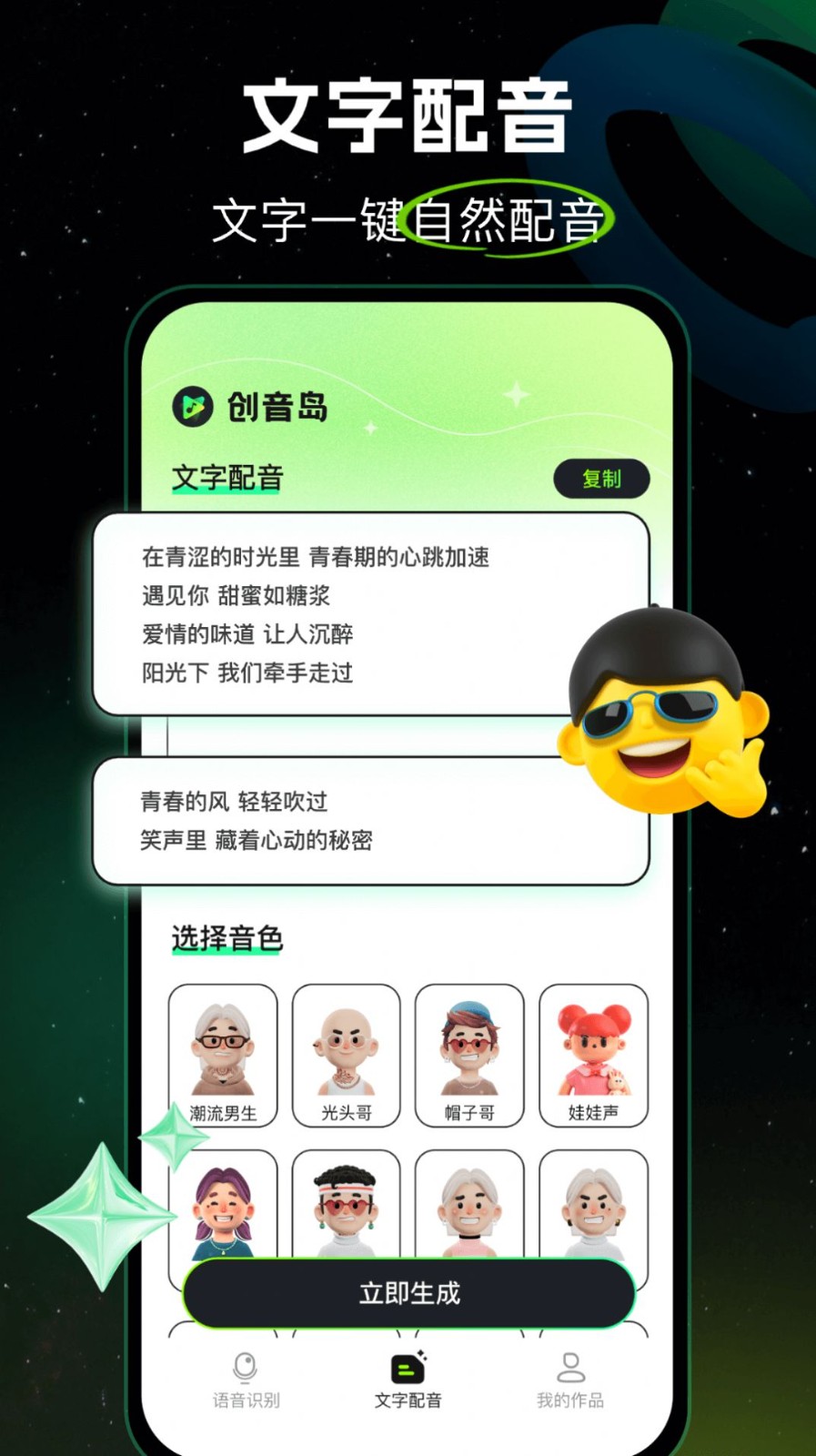 创音岛是一款功能丰富实用的视频配音软件,拥有多种不同风格的音色,类型丰富多样,用户可以根据自己的配音需求和喜好自由选择你喜欢的音色进行配音录制,内置强大专业的语音识别功能,还可以支持随时导出你的创作文件分享到其他平台,感兴趣的小伙伴们快来下载试试吧!