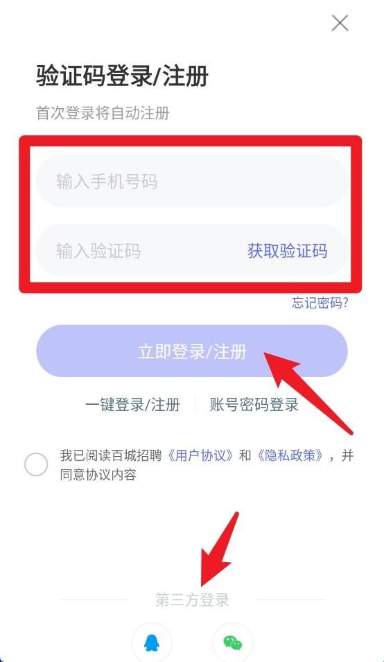 1、用户可通过输入手机号和验证码注册或登录,也支持QQ、微信等第三方快捷方式。