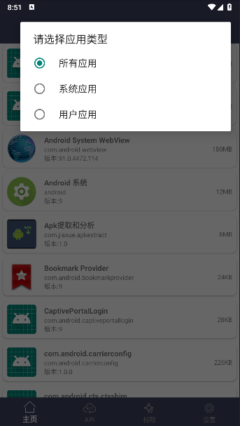 3、根据安卓API等级,分类显示手机上所有的软件。