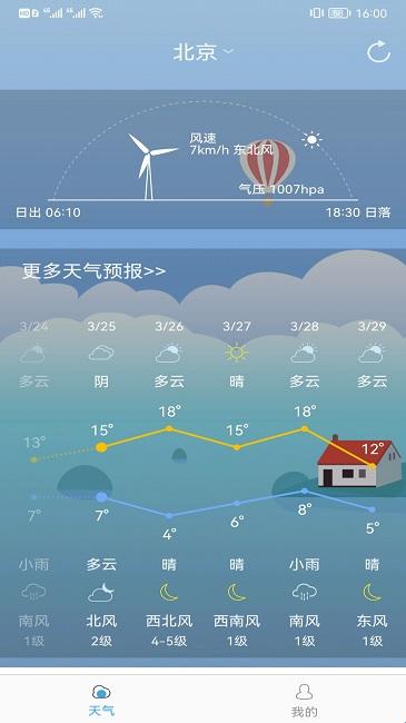 5、预报未来一周的天气走向,最高气温、最低气温,日出日落时间等,是出行旅游好帮手。