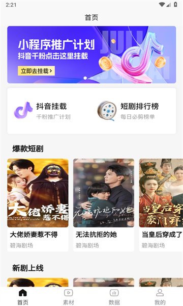 2、平台的短剧素材很丰富,可以第一时间了解到。