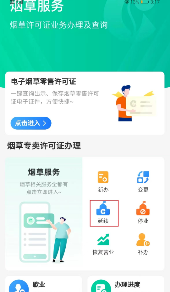 1、在政务服务板块中找到“烟草服务”或者直接在多彩宝APP搜索“烟草或烟草服务”,进入烟草服务”进入界面,然后点击选择所需要办理的事项。