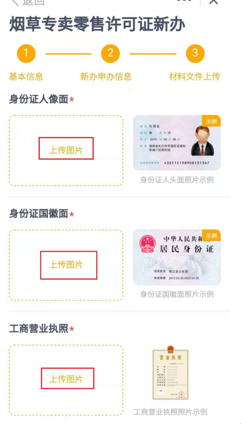 3、根据申请提示输入相关信息,并在上传所需要身份证正面和反面以及营业执照,(注意:拍照上传的图片必须清晰全面,不能只拍一部分),上传完所需图片后点击下方“提交申请”即可完成相关事项的申请事项。