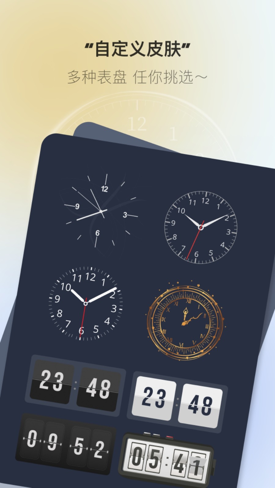 4、精美皮肤:用户可以根据自己的喜好选择多种不同的皮肤,个性化其时钟展示界面。