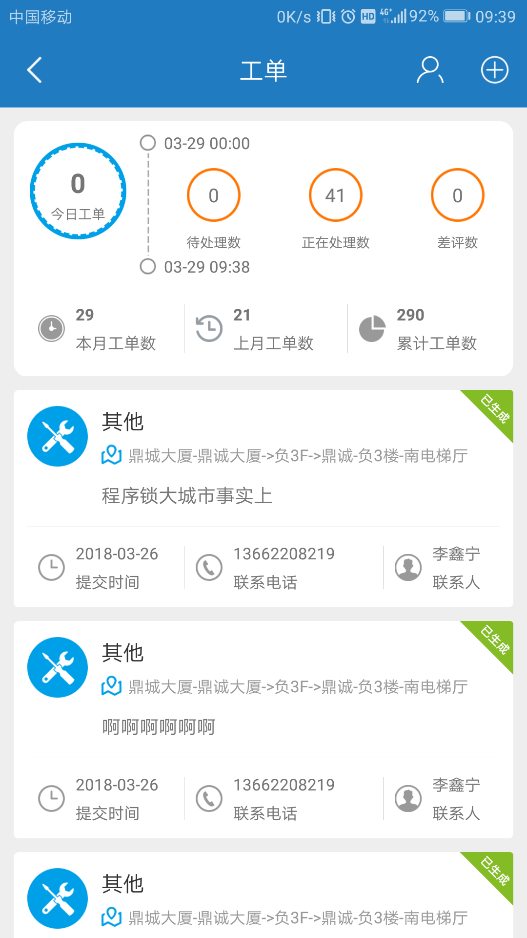 2、统一展示当前通过平台接收以及处理完成的具体工单数目;