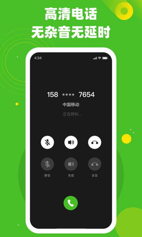 【高清】采用国际先进网络电话语音技术,拒绝延时,杂音,信号丢失,真正实现电信级通话质量,与正常移动通话无差异。
