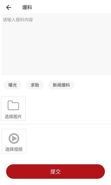 3、在【爆料】页面可以查看网友们的各种爆料,当然我们自己也可以爆料,只需要点击右下角的相机图标,然后填写好相关的信息,点击下方的提交即可;
