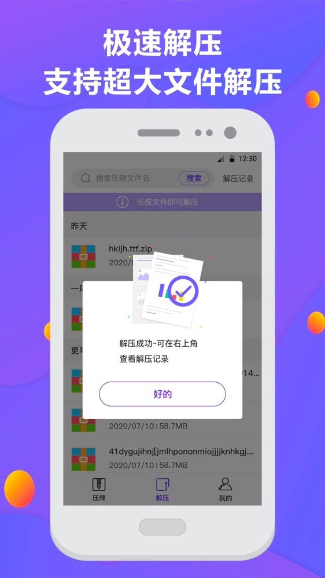 解压缩app由九江鹏成网络科技有限公司所打造的掌上专业文件解压缩工具,该软件整体小巧轻便,所支持解压缩文件格式也是非常丰富的,操作快捷省时又省力,以及新增其他特色功能,可以很好的满足日常工作、学习等方面使用需求,该软件完全免费无广告,有需要的小伙伴们快来下载试试吧!