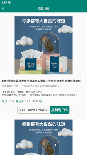 4.点击想要的商品,在详情页面,点击复制淘口令。