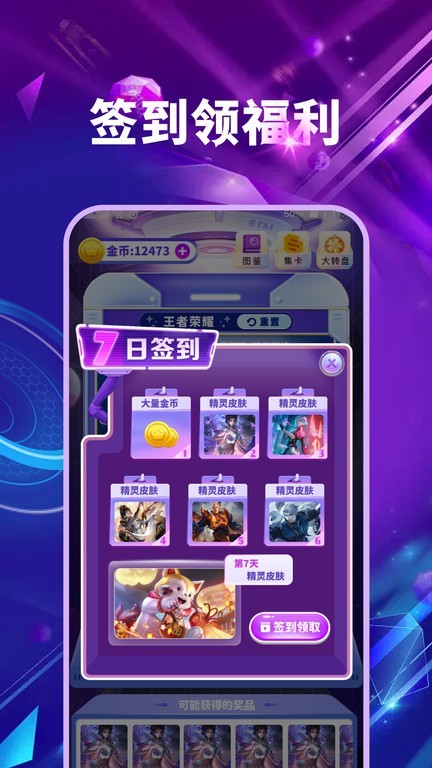 签到领取提供有签到领福利的服务功能,可以参与每日签到领取到游戏皮肤奖品福利