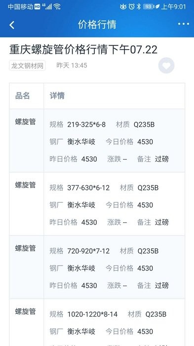 2、钢材的价格,同时这里也为但大家线上提供了超多钢材的价格给到大家,大家在此能够用户和收获到很多钢材当前的估价信息哦。