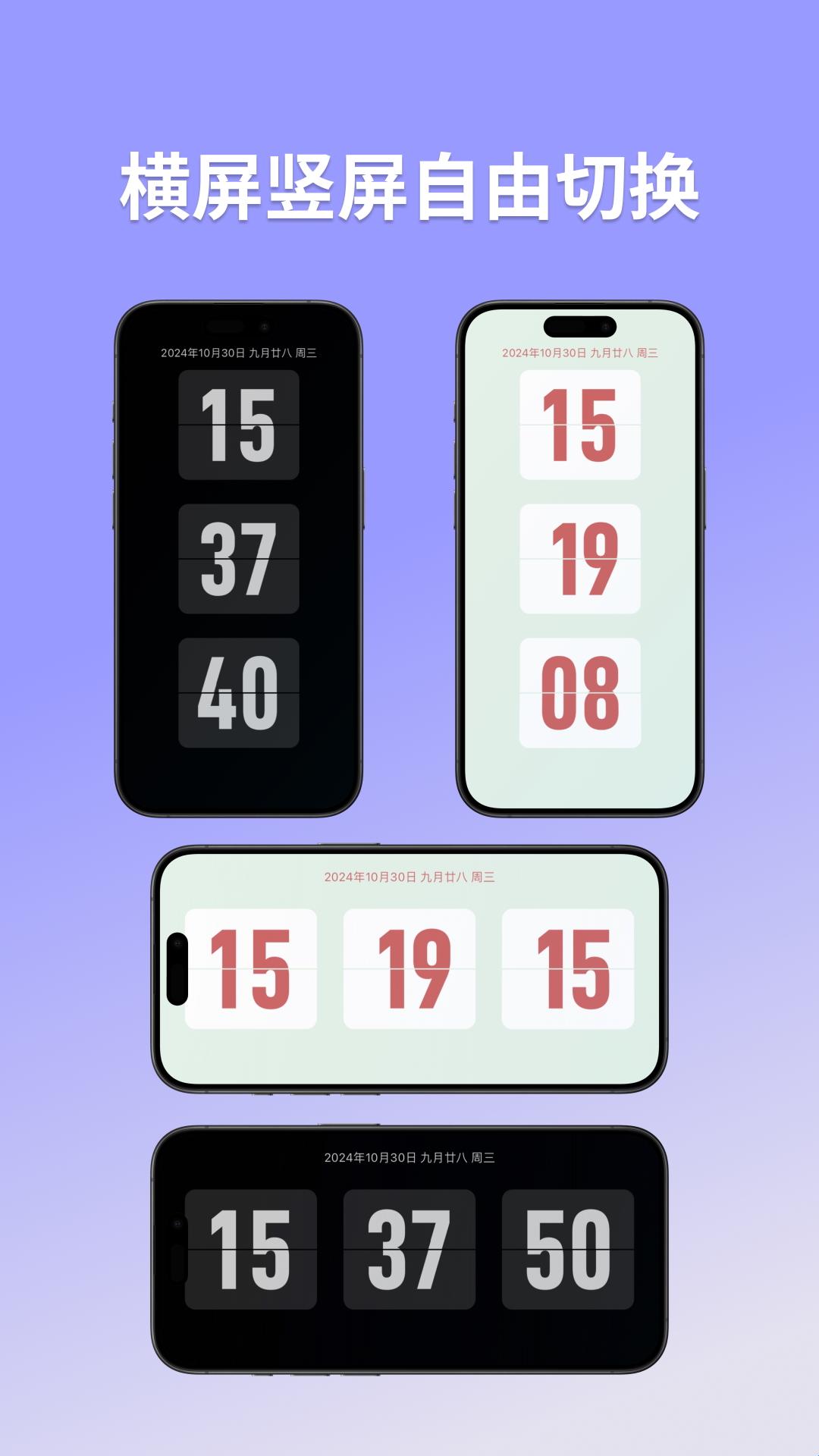 6、经典翻页时钟、简约表盘时钟或是极简数字时钟等,多种时钟主题背景任意挑选。