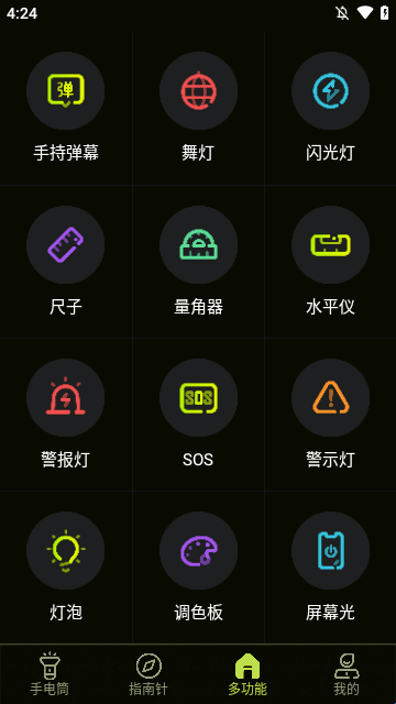除了手电筒之外,还有闪光灯、尺子、手持弹幕、网速测试、屏幕灯、警示灯等丰富的功能。