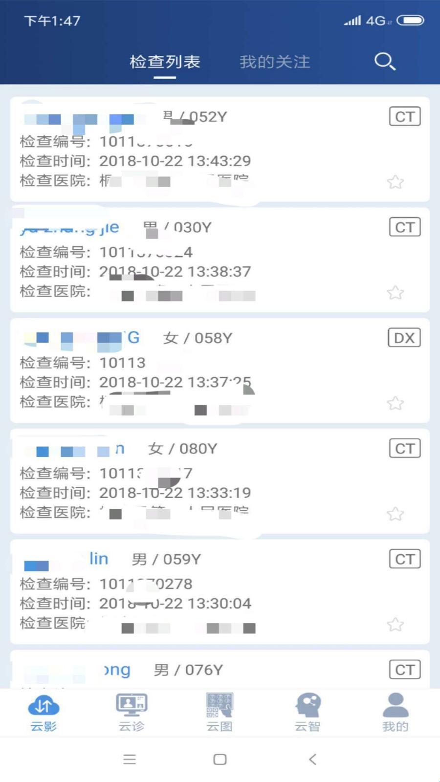 4、用户在软件中能够清晰看到患者详细信息,了解患者的检查医院、类型和检查时间等信息;