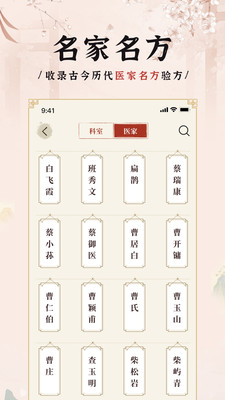 2、名家:古今名家医案经验荟萃,张仲景、孙思邈、胡希恕、朱仁康等众多医家经典医案,有助于学习及调理。