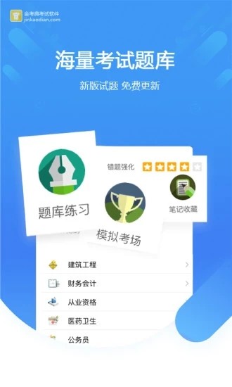 金考典是一款在线刷题的教育类型的软件。里面有海量的职业教育资源题库,不限于医学领域、建筑学领域、考公考编教育学领域、司法领域等等,历年真题更新及时。优质的解析加上章节的联系,如有错题归类错题集,加以练习。线上课程名师讲解,自动记录笔记,让知识点的更加牢固。全部的学习资料都是免费提供给用户使用的,而且还在不断更新优化中,绝对可以满足不同用户的学习需求。
