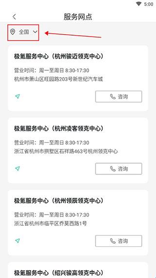 3、在这里就可以查看各个服务区域的地址,还可以线上咨询,左上角还可以选择具体想要了解的地区进行网点查询。