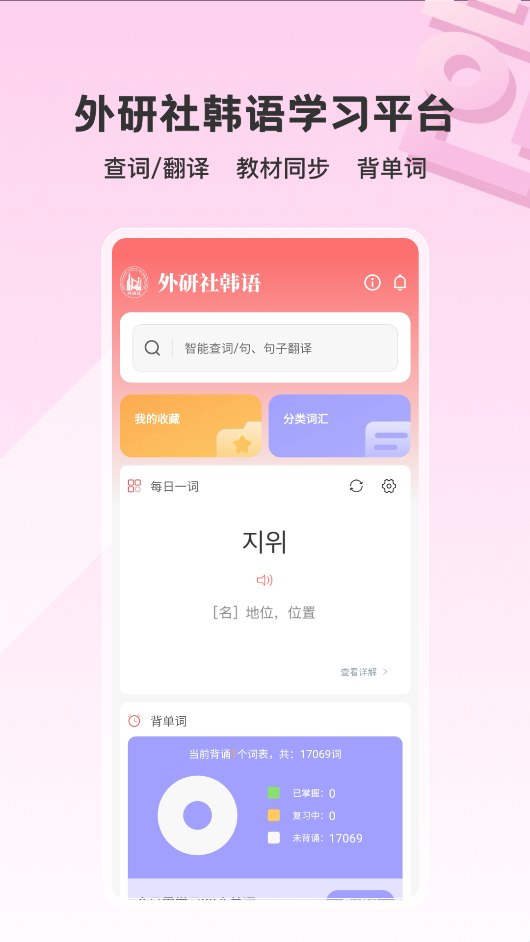 外研社韩语其实非常好用,对于想要学习韩语的用户来说后,这里有最丰富的韩语词汇和相关注释,韩语21个元音、19个辅音在这里都可以找到,零基础的新手用户也可以在这里找到最适合自己的学习方法,全新系统学习和各类配套音视频资源都是可以免费提供给用户使用的,而且软件词库规模十分庞大,让你可以在这里学习到最地道的韩语发音,不同的学科领域都涵盖其中,一键轻松查询你需要了解的单词含义,沟通完全不是问题。