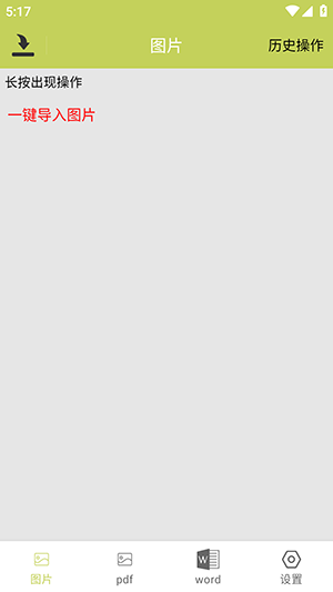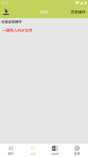 批量PDF操作是一款非常好用的批量处理工具。图片页面可以将图片合并生成一个pdf或一个zip,也可以执行每个图片单独生成pdf的批量操作;pdf页面可以一次性将多个pdf文件转成格式为png或jpg的图片,也可以执行多个pdf单独生成zip或者合并生成为一个zip的批量操作;word页面也是如此,可以由用户选择单独或合并的转化为pdf文件,或是zip文件。灵活性的批量操作可以帮助用户节省很多时间,而且应用还会保留用户的历史操作,可以让用户方便的查看。