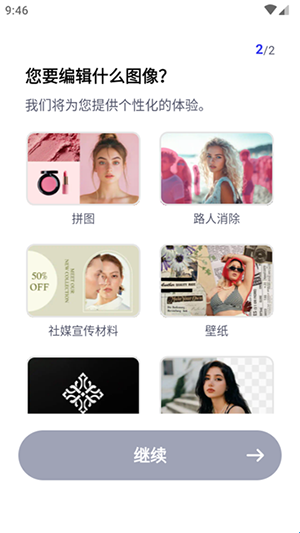 2、专业的ai背景功能拥有1000+模板,选择继续。