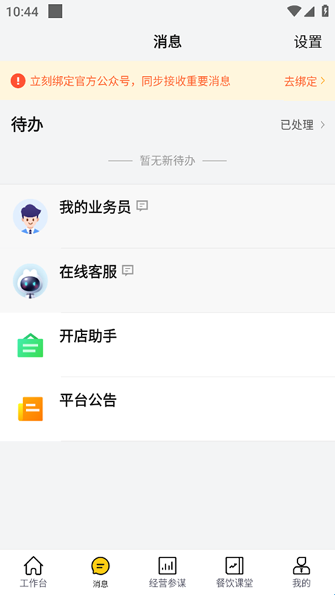 2、进入美团开店宝app后将进入工作台,我们需要分两步免费线上开店,第一步先认领我的门店,第二步需要资质认证,认证结束后就可以使用软件的各种功能了。