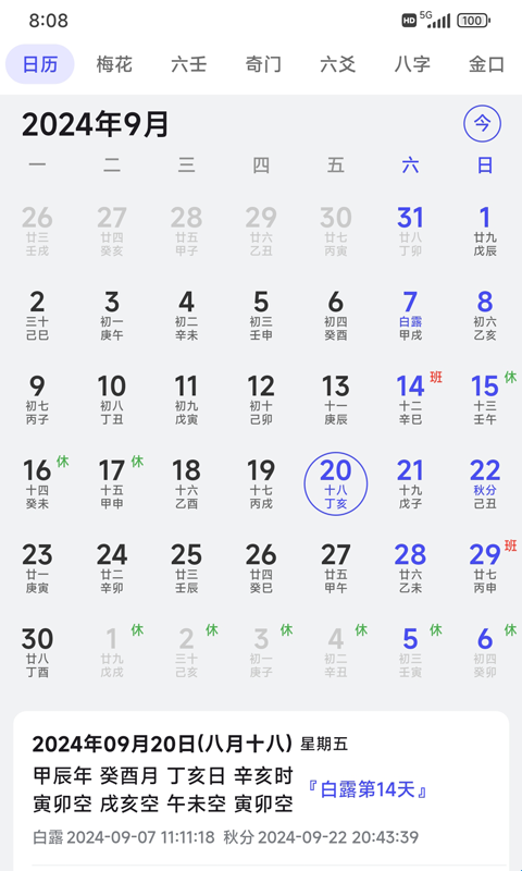 7、农历/阳历/节气节令的显示。