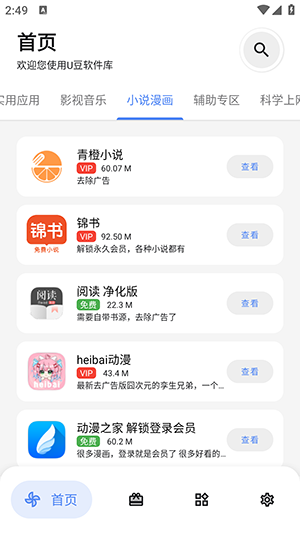 U豆软件库APP全网免费资源都可以在这里获取到,内置软件、游戏、工具等一应俱全,分区都是非常详细的,用户们可以根据个人需求搜索获取,其资源都是安全无病毒的,大家可以放心使用的,喜欢的小伙伴们快来下载体验吧!