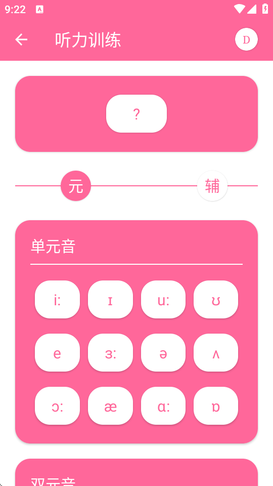 3设有专门的听力测试板块,点击主界面右上角的兔子图标即可进入。训练内容围绕音标展开,通过播放标准发音,让用户进行听力辨析、听写等练习,强化音标听觉认知。