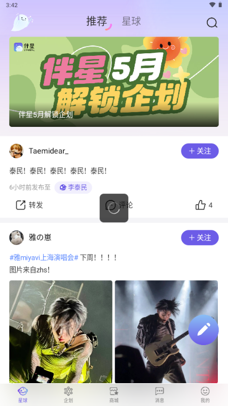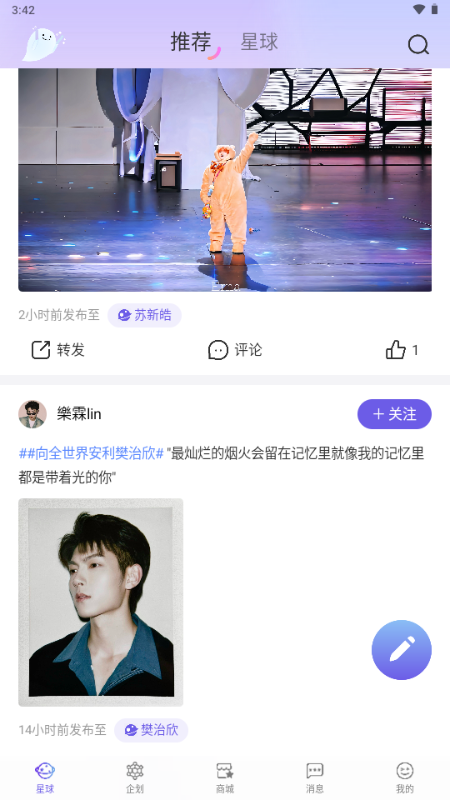 伴星Planet官方最新版本是一个追星软件,这个软件适合追所有的明星,不管是热门的明星还是冷门的,你可以在这里找到自己的组织,创建合适的话题,找到一起追星的小伙伴,你的本命永远陪伴着你,了解明星们的日常行程和作品,追星必备软件。