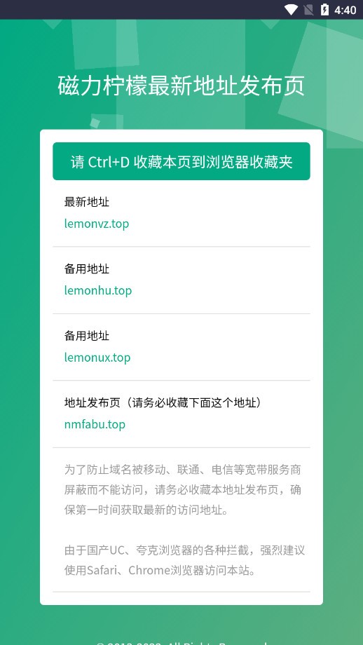 柠檬磁力搜索引擎是一款功能十分强大的手机磁力检索工具,使用界面简洁,内置一站式搜索电影、电视剧、音乐、游戏、书籍等功能,资源丰富。与网盘相比,磁力资源速度不受限加,之不存在资源和谐的问题,使得各种各样的资源都能通过磁力自由传播,满足大家资源获取的需求。
