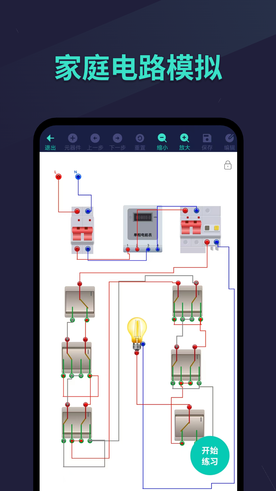 3.很简单就可以在手机上进行仿真实训了,模拟真实的电工电路实物接线图练习