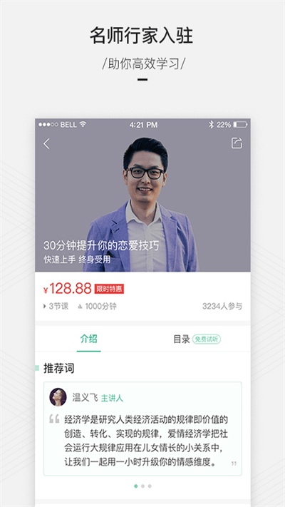 3.同步学习:除了海量的视频课,百度传课还独家推出精致的线上直播课,跟上时代的变化,永远站在知识更新的最前沿,为你提供第一手优质课程,更能即时与老师学生互动,提高学习效率。