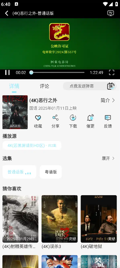 打开光播4KAPP,选择想要观看的影视资源,进入播放界面。