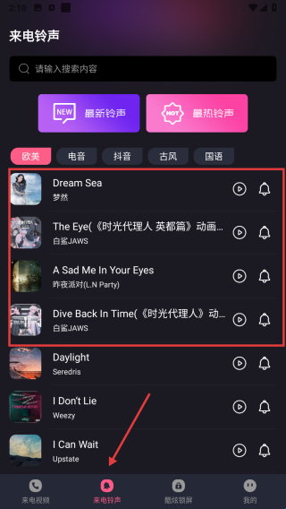 2、设为铃声:平台中可以获取铃声设置工具,以便用户挑选铃声设为来电、短信铃声。