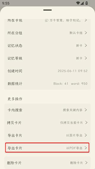 3、进入卡片编辑界面,点击上方的三点,可以导出单个卡片。