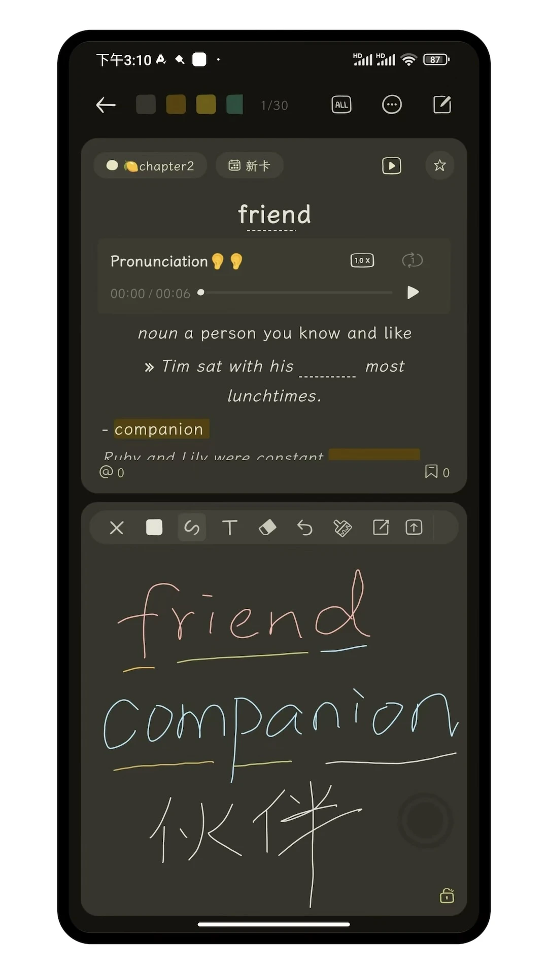 2.闪卡属性,每个独立文字/图片块均可设为正反两面,添加背面助记提示或问题测试。