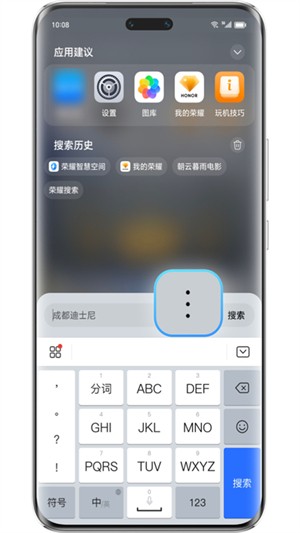 3、多种进入方式:可通过负一屏搜索框、手机桌面搜索框,或在设置中选择下拉桌面进入荣耀搜索。