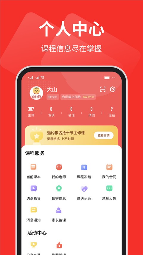 2、个性化课程定制:提供一对一真人在线互动课堂,学员可自主选择老师并灵活预约上课时间。