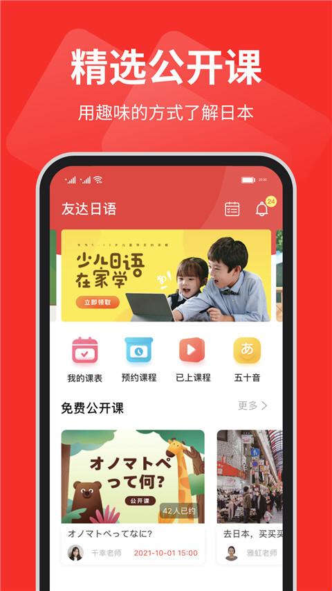 友达日语是一款趣味学习日语软件,里面提供了大量的日语教材预习、音频预习、在线课堂、以及课后作业等全面的课程服务体系。一对一真人在线互动课堂,及时纠正语言使用习惯的,从最基础的日语单词开始学习,逐步提升难度。利用碎片化的时间放松一下看日语类的动画歌曲等等,感受日语氛围。
