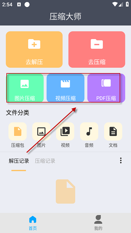 4、压缩分类:不同的压缩类型以分类的方式呈现,帮助你能轻松找到文件并快速完成压缩。