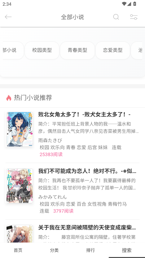1、丰富的小说资源和丰富的小说类型,可以满足不同人群的阅读偏好。