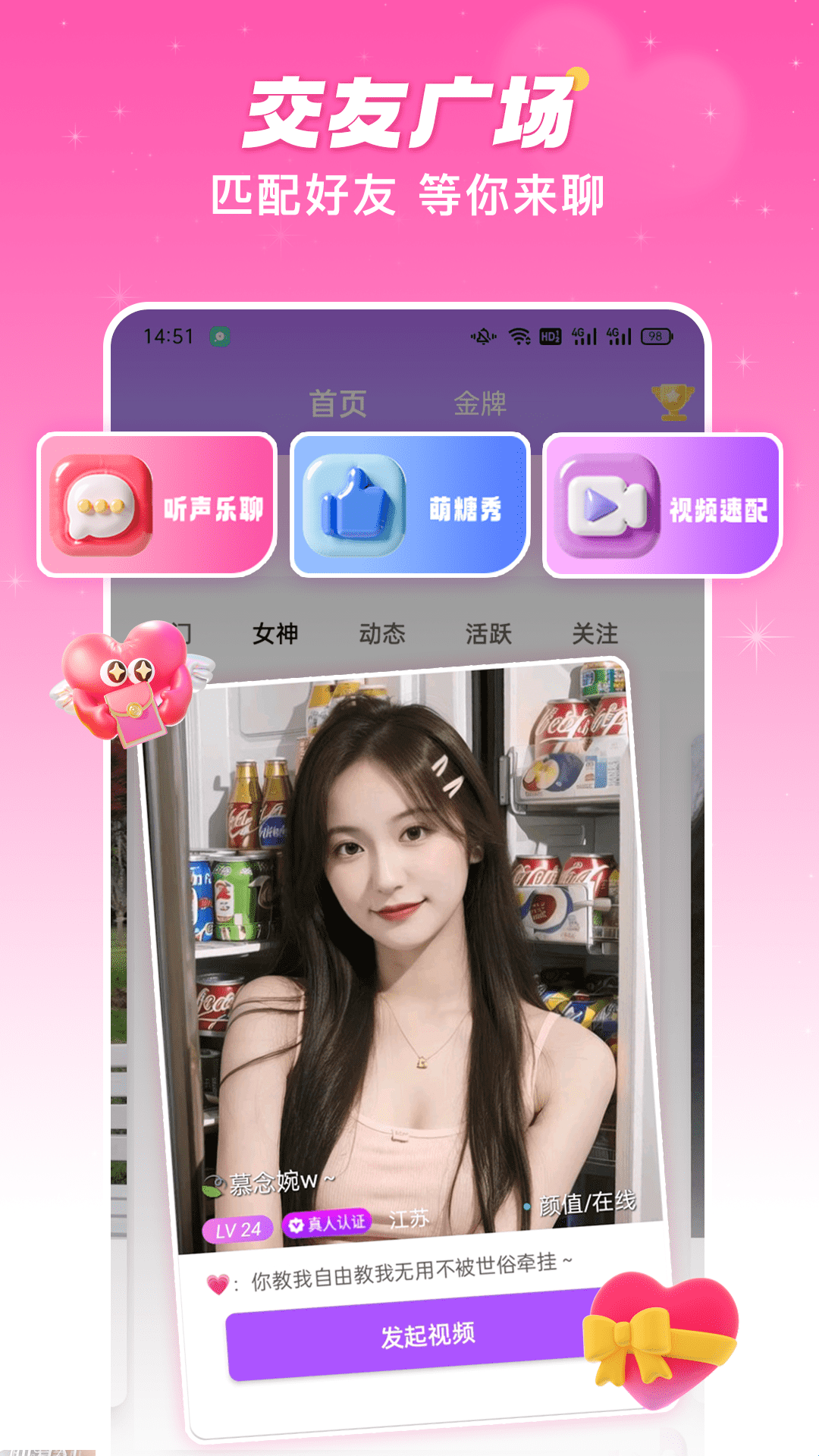 萌糖视频聊天交友以其独特的功能和交友体验吸引着用户,让陌生人之间的交流变得丰富多彩,还结合了多种趣味互动元素,使得每一次交流都充满乐趣和新鲜感。无论是分享生活片段,还是讨论共同兴趣,萌糖都将为你提供一个温暖而开放为人们寻找情绪共鸣者提供了一个良好的平台。