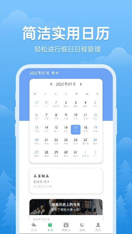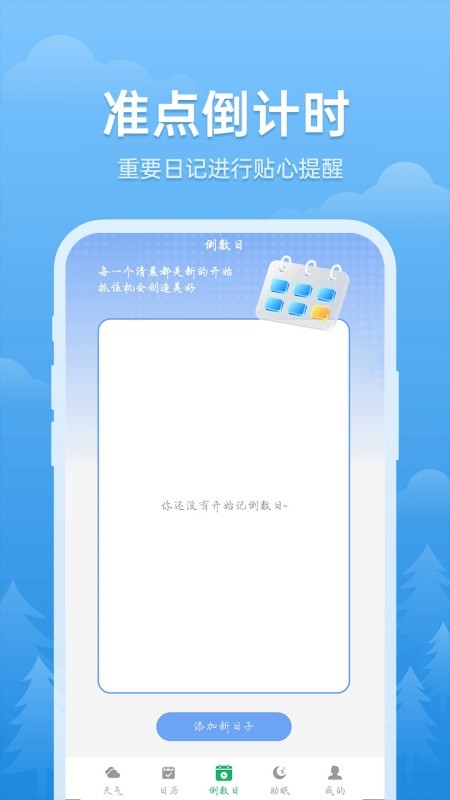 3、可自定义记录重要日程,如纪念日、考试倒计时等,并以数字形式直观显示,让你时刻掌握时间进度。
