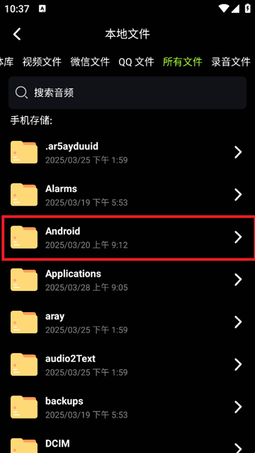 3、点击所有文件,选择需要剪辑的音频文件即可。