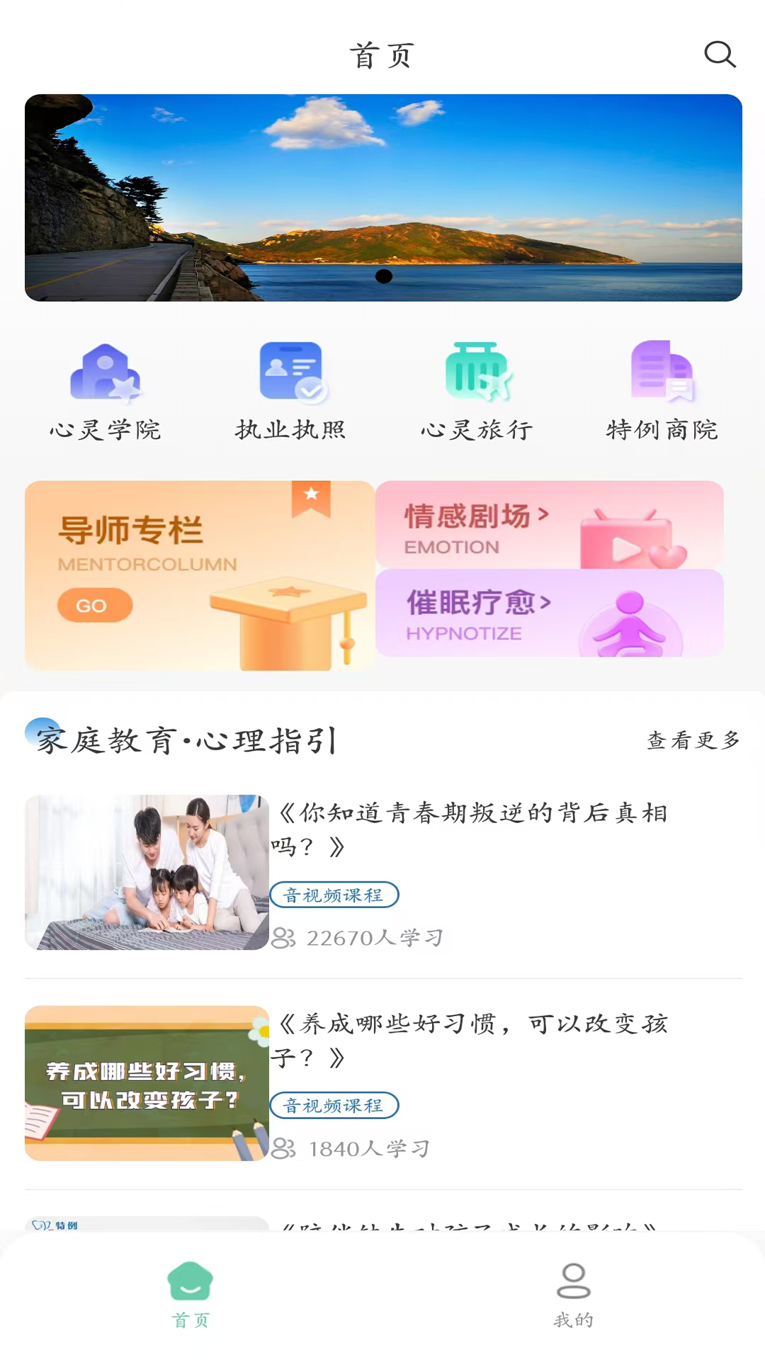 2、在首页,就能翻看诸多教育心理课程学习。